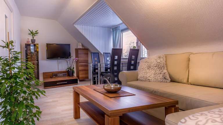 Die Unterkunft Ferienwohnung Gooss bietet Gartenblick und eine Terrasse. Es handelt sich um ein Dachgeschoss-Apartment mit einem Schlafzimmer, das über eine schmale Treppe erreichbar ist. WLAN ist kostenlos verfügbar. Die Unterkunft wird von einem privaten Gastgeber geführt und legt Wert auf Ruhe und die Einhaltung örtlicher Sicherheitsrichtlinien.