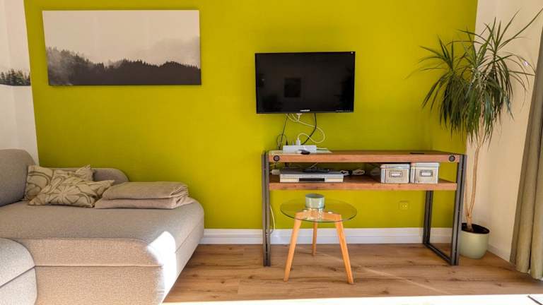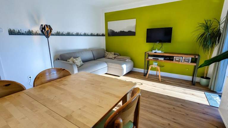 Die Ferienwohnung verfügt über zwei Schlafzimmer, ein Wohnzimmer mit Flachbild-TV, eine gut ausgestattete Küche, die einen Kühlschrank und Geschirrspüler umfasst, sowie ein Badezimmer mit Dusche. Ein Balkon mit Bergblick lädt zum Verweilen ein. Handtücher und Bettwäsche werden zur Verfügung gestellt.