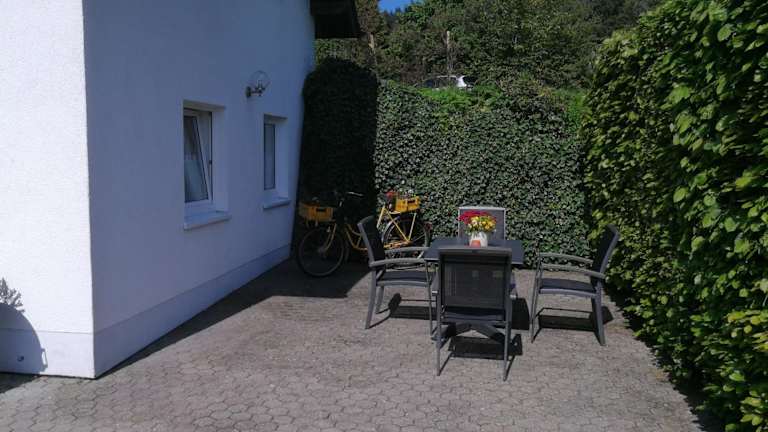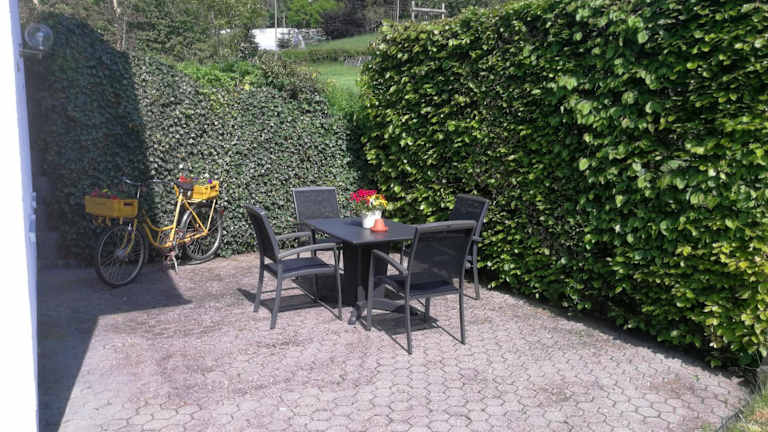 Die Ferienwohnung umfasst 1 Schlafzimmer, ein Wohnzimmer mit Flachbild-TV sowie eine gut ausgestattete Küche mit Kühlschrank und Geschirrspüler. Das Badezimmer ist mit einer Dusche ausgestattet. Von der Terrasse aus hat man einen schönen Blick auf den Garten. Handtücher und Bettwäsche werden bereitgestellt.