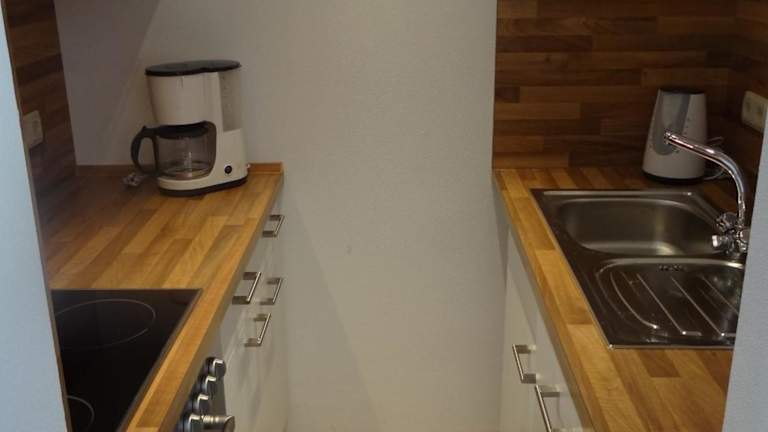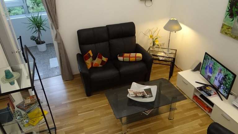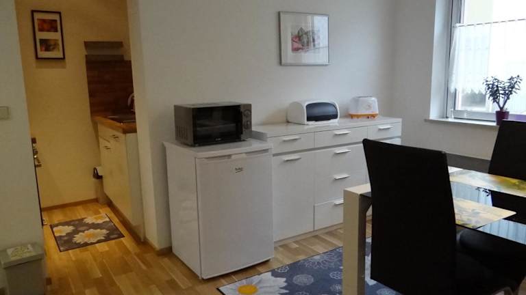 Die Ferienwohnung verfügt über ein Schlafzimmer und ein Badezimmer. Zur Ausstattung gehören Bettwäsche, Handtücher, ein Flachbild-TV mit Satellitenkanälen sowie ein Essbereich. Die voll ausgestattete Küche bietet allen nötigen Komfort und vom Balkon aus hat man einen schönen Gartenblick. Allergikerfreundliche Zimmer sind ebenfalls verfügbar.