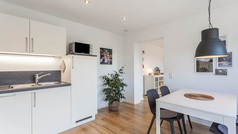 Die Ferienwohnung umfasst zwei Schlafzimmer, ein Badezimmer sowie eine voll ausgestattete Küche, die alle notwendigen Utensilien bietet. Zudem sind Bettwäsche und Handtücher inklusive.