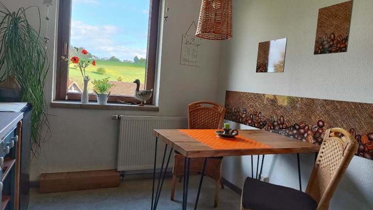 Die Ferienwohnung Gute Zeit befindet sich in Ruhla, nur 9 km vom Bahnhof Eisenach entfernt. Die Umgebung bietet eine malerische Sicht auf die Berge und ist ideal für Ausflüge in die Natur, darunter zahlreiche Velofahrmöglichkeiten.
