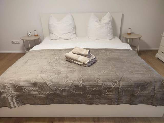 Die Ferienwohnung besteht aus einem Schlafzimmer, einem Wohnzimmer und einer voll ausgestatteten Küche mit Kühlschrank und Kaffeemaschine. Ein Badezimmer mit Dusche und Haartrockner ist ebenfalls vorhanden. Handtücher und Bettwäsche werden bereitgestellt. Die Unterkunft bietet Nichtraucherzimmer und die Möglichkeit einer kontaktlosen Anreise und Abreise.