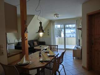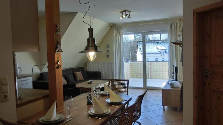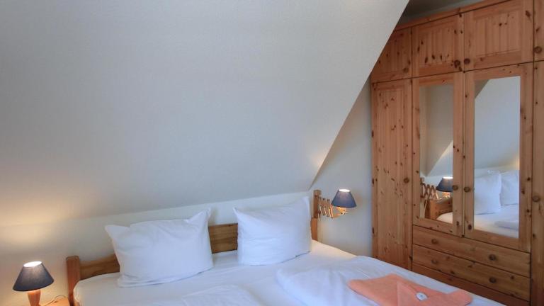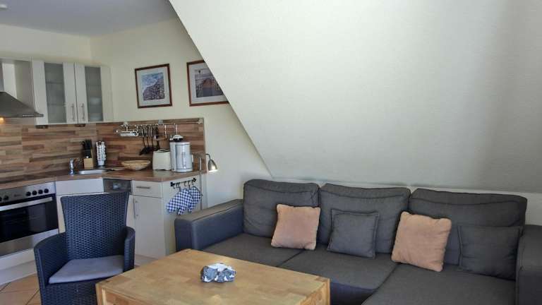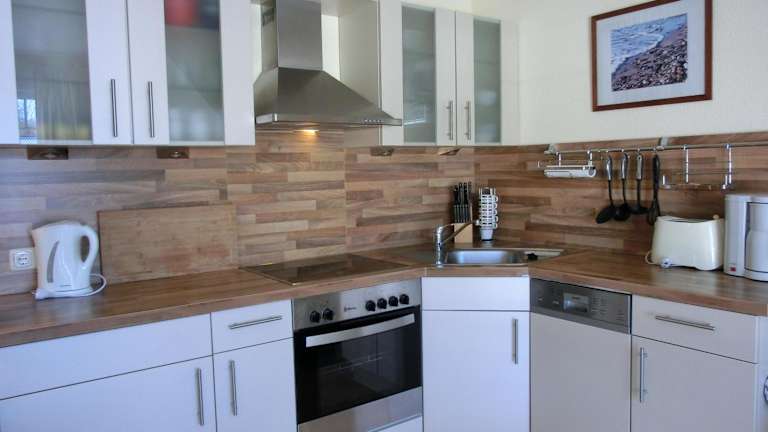 Die Ferienwohnung umfasst 2 Schlafzimmer und bietet eine moderne Ausstattung. Zur Ausstattung gehören ein TV sowie eine voll ausgestattete Küche mit Kühlschrank und Geschirrspüler.