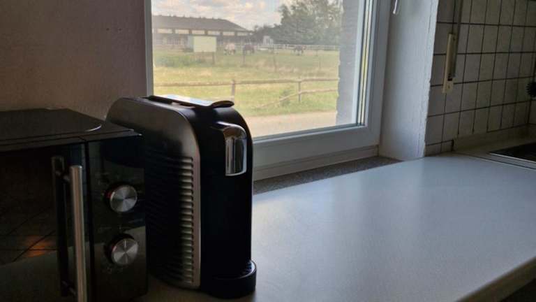 In der Ferienwohnung befindet sich eine voll ausgestattete Küche mit einem Kühlschrank und einer Kaffeemaschine. Essenslieferung in die Unterkunft ist möglich. Es sind keine Restaurants oder anderen Verpflegungsmöglichkeiten in der Beschreibung erwähnt.