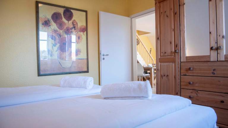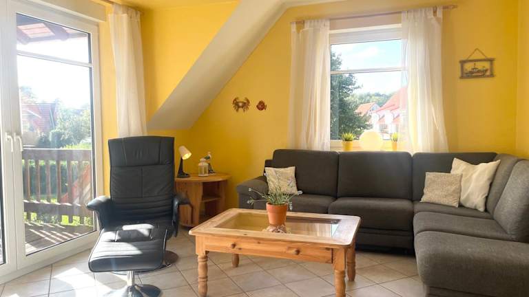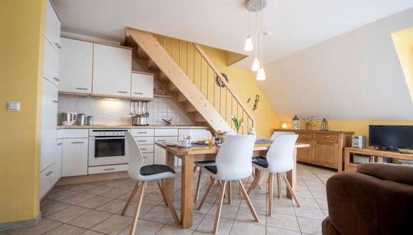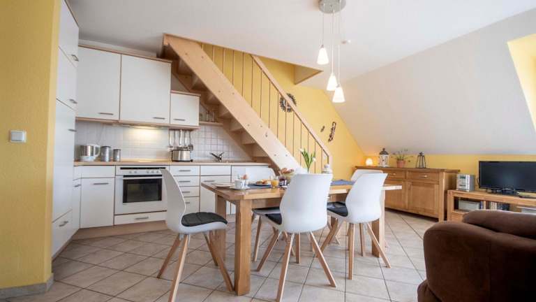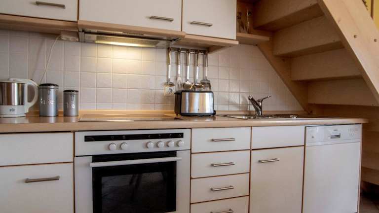 Die Ausstattung der Ferienwohnung umfasst eine voll ausgestattete Küche mit Kühlschrank, Geschirrspüler, Ofen und Mikrowelle. Für zusätzlichen Komfort können Handtücher und Bettwäsche gegen Aufpreis bereitgestellt werden.