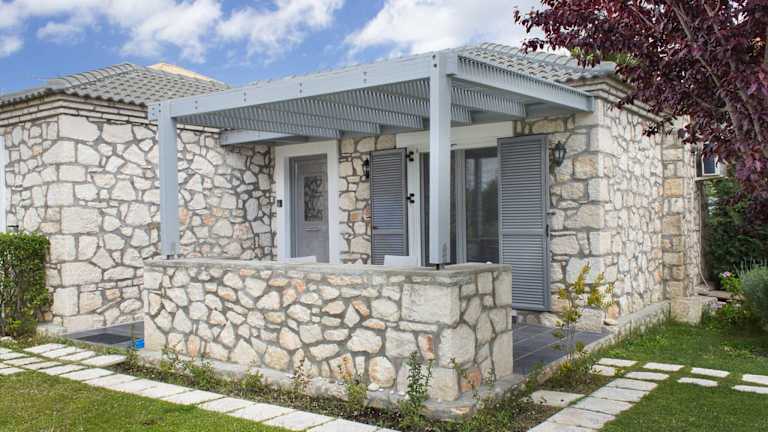 Die Unterkunft verfügt über klimatisierte Zimmer mit moderner Ausstattung. Jedes Ferienhaus bietet eine voll ausgestattete Küche mit Kühlschrank, Backofen, Mikrowelle, Toaster, Kaffeemaschine und Wasserkocher. Ein gemütlicher Sitzbereich mit Flachbild-Sat-TV und ein eigenes Bad mit Dusche und Haartrockner sind ebenfalls vorhanden. Ein Balkon oder eine Terrasse bieten einen schönen Blick auf die Umgebung.
