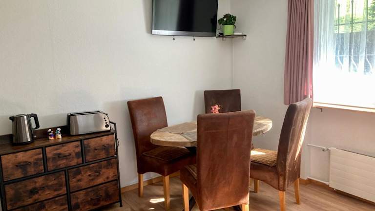 Die Ferienwohnung umfasst 2 Schlafzimmer und 1 Badezimmer. Sie ist ausgestattet mit Bettwäsche, Handtüchern, einem Flachbild-TV mit Satellitenkanälen, einem Essbereich und einer voll ausgestatteten Küche. Eine Veranda oder ein Patio mit Blick auf den Garten lädt zum Entspannen ein. Auf Wunsch können Handtücher und Bettwäsche gegen Aufpreis bereitgestellt werden.