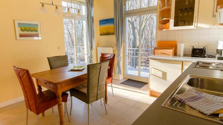 Die Ferienwohnung Haus am Meer Nr. 5 befindet sich in Rerik, nur 100 m vom Strand Rerik entfernt. Die Hauptbahnhof Wismar liegt 35 km und die Neue Messe Rostock 37 km davon entfernt. Der nächstgelegene Flughafen ist der Flughafen Rostock-Laage, welcher sich 77 km von der Unterkunft entfernt befindet.