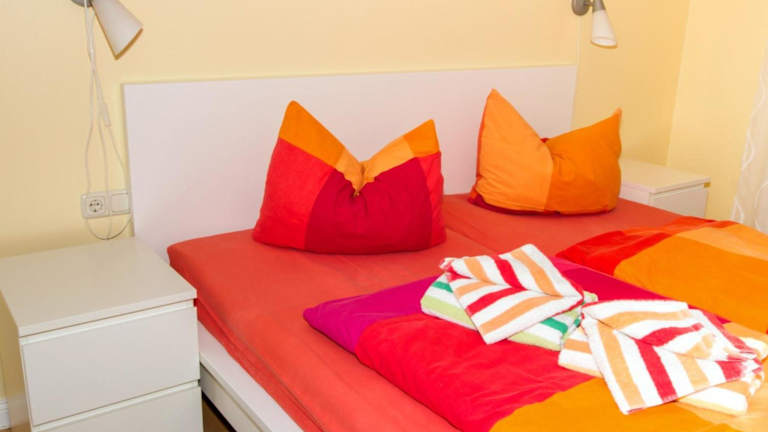 Die Ferienwohnung umfasst eine Küche mit Kühlschrank, Geschirrspüler und Ofen. Zudem gibt es ein Wohnzimmer, einen Essbereich, zwei Schlafzimmer und ein Badezimmer mit Dusche. Handtücher und Bettwäsche werden gestellt. Die Unterkunft bietet ausserdem eine Terrasse und einen Grill.
