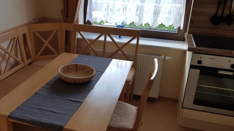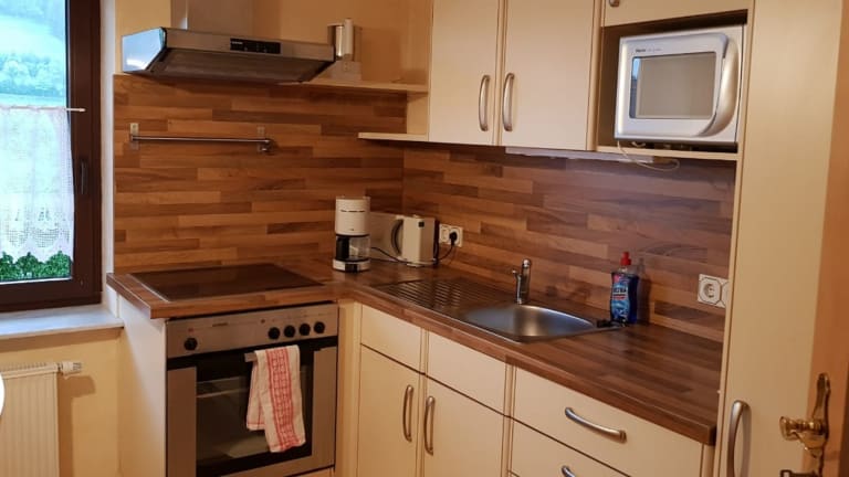 Die Ferienwohnung bietet ein Schlafzimmer, eine gut ausgestattete Küche mit Kühlschrank und Ofen, ein Wohnzimmer sowie einen Flachbild-TV. Für die Gäste werden Handtücher und Bettwäsche bereitgestellt.