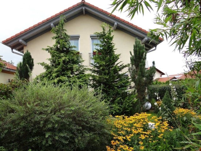 Unsere neu umgebaute, klimatisierte Fewo erstreckt sich mit ihren 55 qm auf 2 Etagen. Im EG befindet sich das Bad mit Dusche und WC. Die Küche verfügt über eine gemütliche Sitzecke, einen Geschirrspüler und eine komplette Küchenausstattung. Im Eingangsbereich haben Sie ebenfalls die Möglichkeit, gemütlich zu sitzen oder auch mal zu lesen (Info- Material und Romane reichlich vorhanden). Hier befindet sich auch der Aufgang zur 1. Etage. Ein gemütliches Wohnzimmer mit TV , DVD- Player und Stereo- Anlage sowie genügend Gesellschaftsspiele sorgen in der 1. Etage für Abwechslung. Schlafen können Sie in 2 getrennten Schlafzimmern, welche beide über ein gemütliches Doppelbett verfügen. Eine kleine Terrasse im Vorgarten komplettiert das Angebot unserer Fewo. Gern sind Sie natürlich auch herzlichst in unserem Garten auf der großen Terrasse eingeladen, mit uns gemeinsam den Abend zu verbringen z.B. bei einem gemütlichen Grillabend.