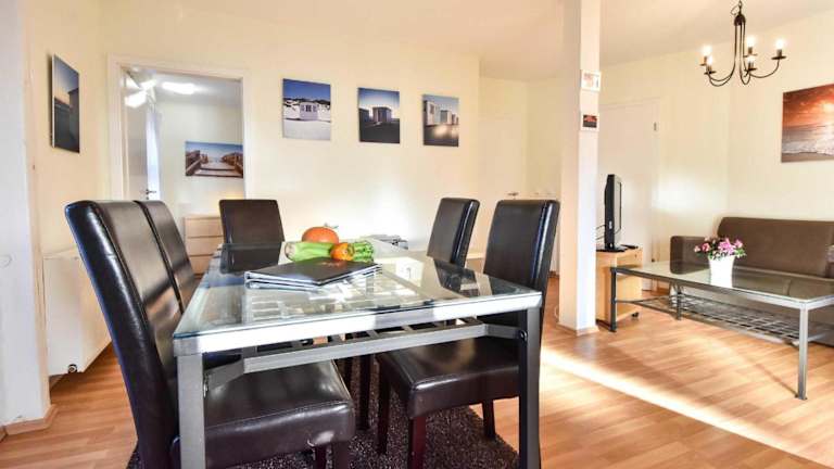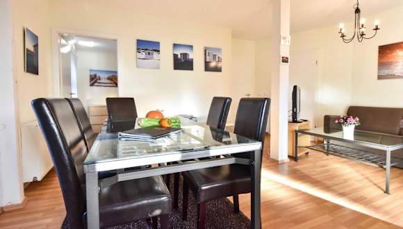 Die Ferienwohnung verfügt über zwei Schlafzimmer, einen Balkon sowie eine Küche mit Kühlschrank und Geschirrspüler. Zudem sind Handtücher und Bettwäsche vorhanden. Die Unterkunft bietet kostenloses WLAN, einen TV und ist als Nichtraucherunterkunft konzipiert.