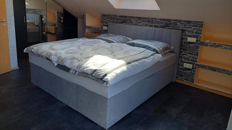 Die Ferienwohnung besteht aus 2 klimatisierten Schlafzimmern und bietet ein Badezimmer mit Dusche, Badewanne und Haartrockner. Die Küche ist mit Kühlschrank, Geschirrspüler, Ofen, Kaffeemaschine und Wasserkocher ausgestattet.