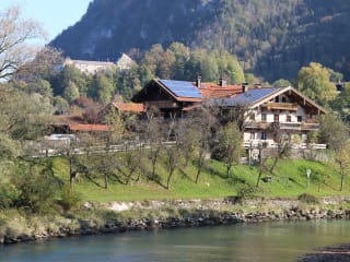 Die Ferienwohnung Haus Wuhrbichl befindet sich in Marquartstein, umgeben von einer reizvollen Landschaft, die zu Aktivitäten wie Skifahren und Velofahren einlädt. Die Nähe zu Attraktionen wie Herrenchiemsee (26 km) und Max Aicher Arena (33 km) fördert einen abwechslungsreichen Aufenthalt.