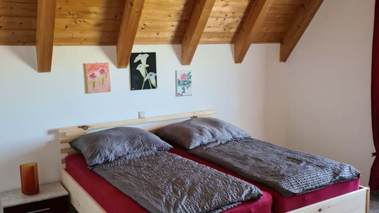 Die Ferienwohnung umfasst zwei Schlafzimmer, ein Wohnzimmer sowie ein Badezimmer mit Badewanne oder Dusche. Die gut ausgestattete Küche ist mit einem Kühlschrank und Geschirrspüler versehen. Ein Flachbild-TV und ein Balkon mit Gartenblick sind ebenfalls vorhanden. Handtücher und Bettwäsche werden bereitgestellt.
