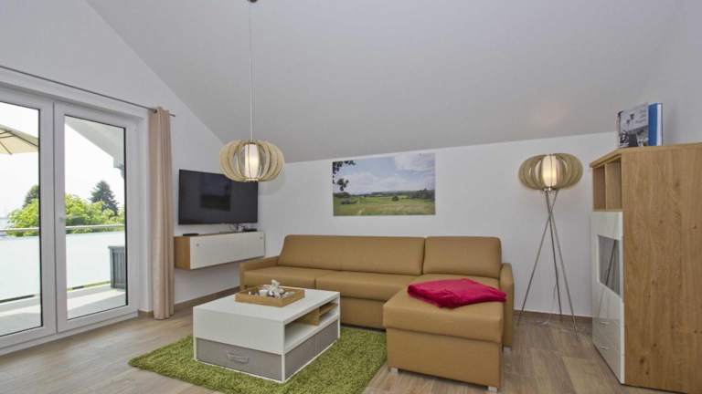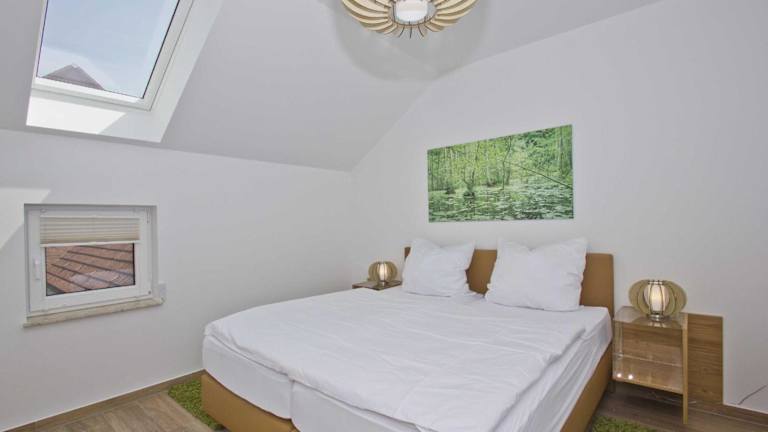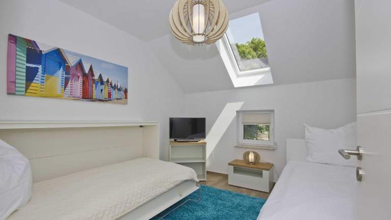 Die Ferienwohnung umfasst 2 Schlafzimmer, ein Badezimmer mit Dusche, einen TV sowie eine gut ausgestattete Küche, die mit einem Kühlschrank und einem Geschirrspüler ausgestattet ist.