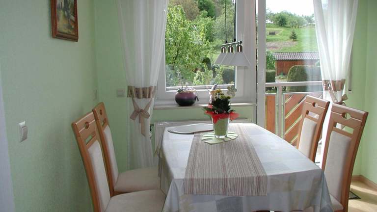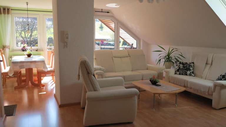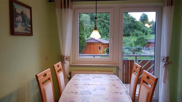 Die Ferienwohnung befindet sich im oberen Stockwerk unseres freistehenden Hauses. Es ist alles vorhanden, was Sie für einen angenehmen Aufenthalt benötigen. Ein kostenfreier Parkplatz steht direkt vor dem Haus zur Verfügung.