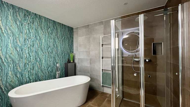 Das Zimmer der Ferienwohnung besteht aus einem Schlafzimmer und einem Wohnzimmer. Die gut ausgestattete Küche ermöglicht die Zubereitung eigener Gerichte und ist mit einem Kühlschrank sowie einem Geschirrspüler ausgestattet. Ein TV steht ebenfalls zur Verfügung.