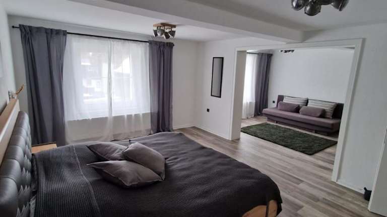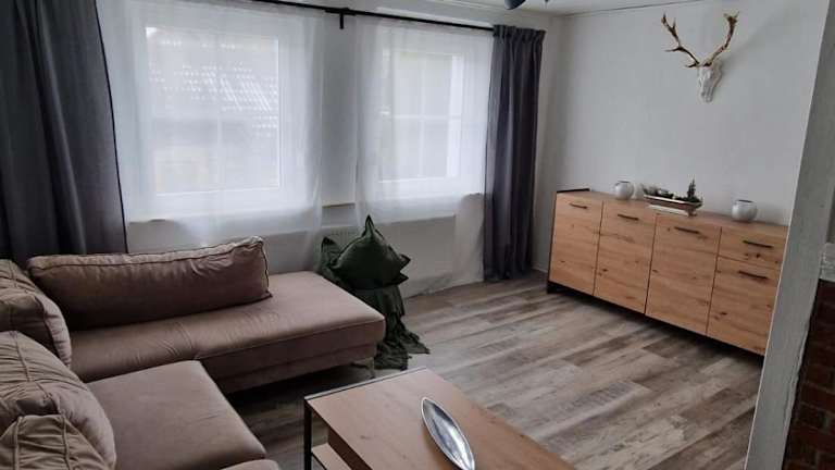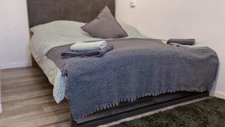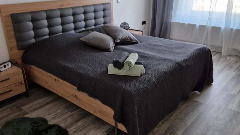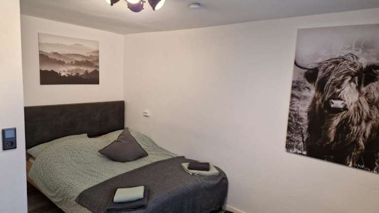 Die Ferienwohnung umfasst 2 Schlafzimmer, ein Wohnzimmer und eine voll ausgestattete Küche mit Kühlschrank und Kaffeemaschine. Das Badezimmer ist mit einer Dusche und einem Haartrockner ausgestattet. Handtücher und Bettwäsche sind vorhanden.