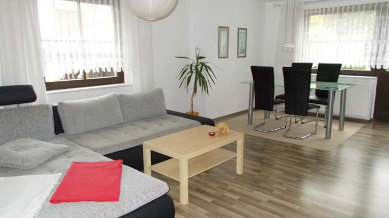 Die Ferienwohnung Hoffmann bietet eine umfassend ausgestattete Unterkunft mit einem Schlafzimmer und einem Badezimmer. Zur Ausstattung gehören eine voll eingerichtete Küche, ein Essbereich und eine Terrasse mit Blick auf den Garten. Die Unterkunft wird von einem privaten Gastgeber geführt und erlaubt keine Feiern. Ein Check-in ist ab 14:00 Uhr bis 17:00 Uhr möglich, während der Check-out zwischen 10:00 Uhr und 10:30 Uhr erfolgt.