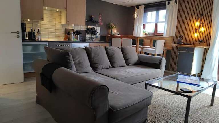 Die Ferienwohnung bietet eine Reihe von Annehmlichkeiten, darunter eine voll ausgestattete Küche mit Kühlschrank, Geschirrspüler und Ofen. Es gibt ein Wohnzimmer mit Essbereich, ein Schlafzimmer sowie ein Badezimmer mit Dusche. Handtücher und Bettwäsche werden bereitgestellt. Die Unterkunft ist nicht für Haustiere zugelassen.