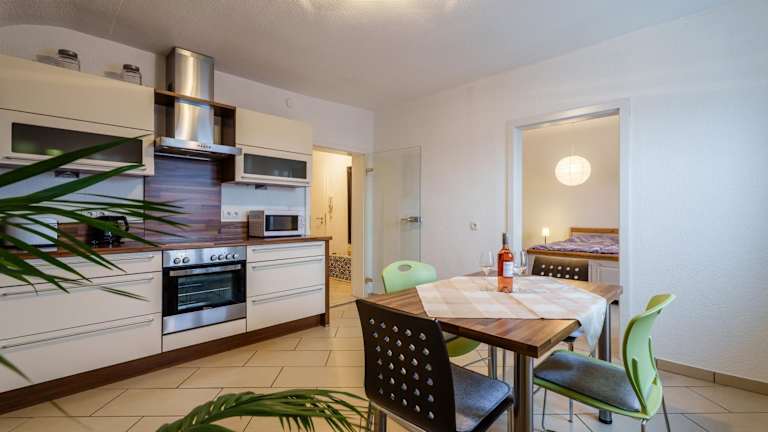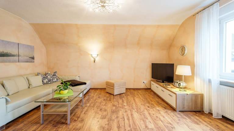 Die Ferienwohnung bietet ein gemütliches Ambiente mit Stadtblick. Sie verfügt über ein Schlafzimmer, ein Badezimmer mit Dusche und kostenlosen Pflegeprodukten. Die gut ausgestattete Küche enthält einen Kühlschrank, einen Geschirrspüler und einen Ofen. Zudem steht ein Satelliten TV zur Verfügung.