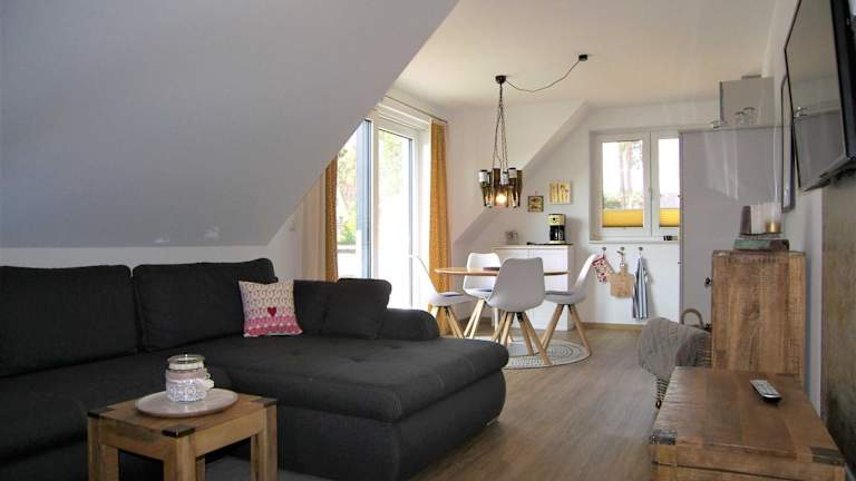 Die Ferienwohnung besteht aus 2 Schlafzimmern, einem Wohnzimmer und einer voll ausgestatteten Küchenzeile mit einem Kühlschrank und einer Kaffeemaschine. Zudem gibt es ein Badezimmer mit Dusche und Haartrockner. Handtücher und Bettwäsche werden bereitgestellt.