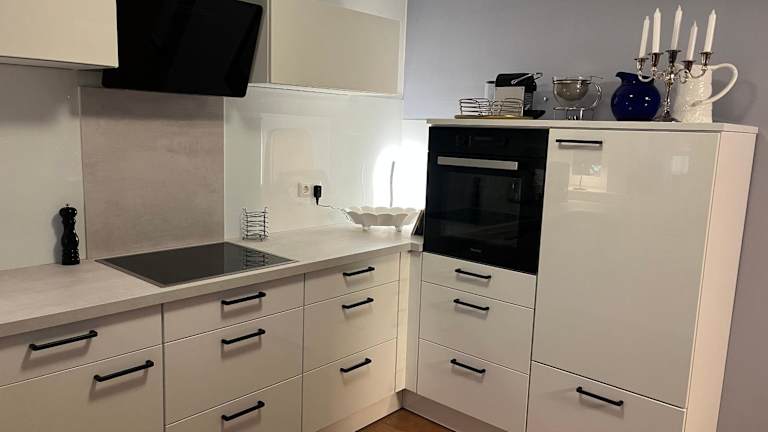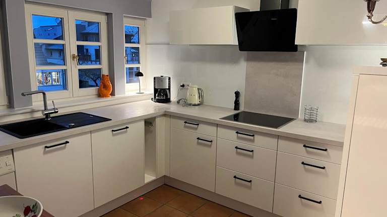 Die gut ausgestattete Küche der Ferienwohnung ermöglicht es den Gästen, eigene Mahlzeiten zubereiten. Grillmöglichkeiten stehen ebenfalls zur Verfügung.