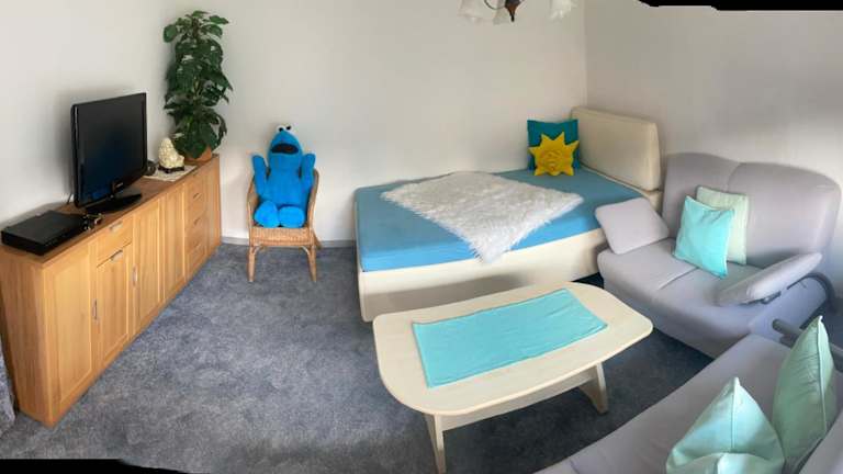 Die Ferienwohnung beinhaltet ein Schlafzimmer sowie ein Badezimmer mit Dusche und Badewanne. Ein Blu-ray-Player sorgt für Unterhaltung. Handtücher und Bettwäsche stehen zur Verfügung.