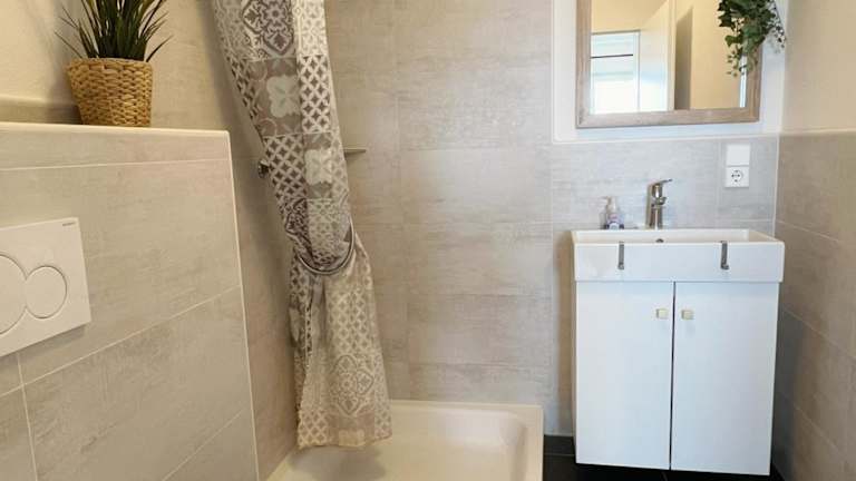 Die Ferienwohnung verfügt über 1 Schlafzimmer, eine gut ausgestattete Küche mit Kühlschrank und Geschirrspüler, sowie 1 Badezimmer mit Dusche, Haartrockner und Waschmaschine. Handtücher und Bettwäsche können gegen Aufpreis bereitgestellt werden.
