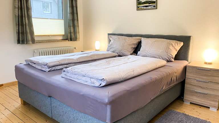 Die Ferienwohnung verfügt über zwei Schlafzimmer, ein Wohnzimmer und eine voll ausgestattete Küche mit einem Kühlschrank und einer Kaffeemaschine. Ein Badezimmer mit Dusche und Haartrockner steht ebenfalls zur Verfügung. Für zusätzlichen Komfort können Handtücher und Bettwäsche gegen Aufpreis bereitgestellt werden. Die Unterkunft ist rauchfrei und bietet gemütliche Gartenmöbel auf dem Balkon.