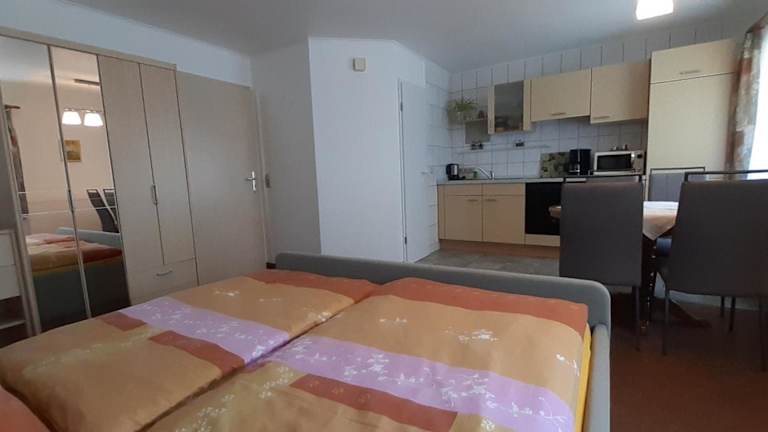 Die Ferienwohnung besteht aus einem Schlafzimmer und einem Badezimmer. Die Ausstattung umfasst Bettwäsche, Handtücher, einen Flachbild-TV mit Satellitenkanälen sowie eine voll ausgestattete Küchenzeile.
