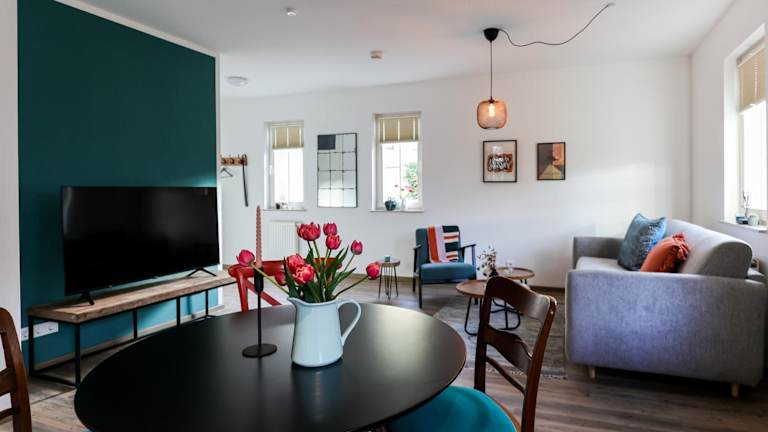 Die Ferienwohnung ist ausgestattet mit einem Schlafzimmer, einer Küche, die mit einem Kühlschrank und einem Geschirrspüler versehen ist, einem Flachbild-TV, einem Sitzbereich sowie einem Badezimmer, das mit einer Dusche ausgestattet ist. Handtücher und Bettwäsche werden zur Verfügung gestellt.