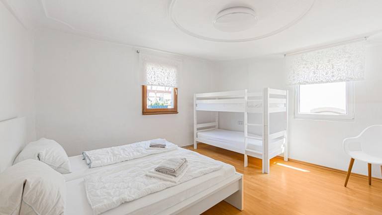 Die Ferienwohnung besteht aus drei Schlafzimmern, einem Wohnzimmer, einer voll ausgestatteten Küche und einem Badezimmer. Handtücher und Bettwäsche werden bereitgestellt. Die Unterkunft ist Nichtraucherzimmer. Haustiere sind auf Anfrage erlaubt.