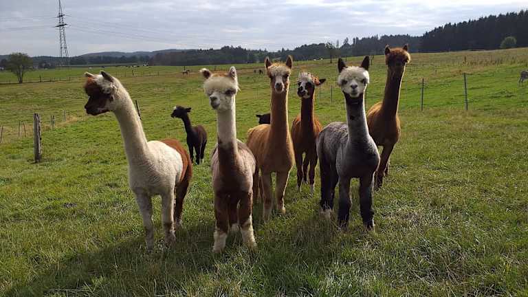 Die Unterkunft befindet sich auf einer Alpaka-Farm und bietet eine heimelige Ferienwohnung mit Wiesen und Garten. Die Anlage bietet Grillmöglichkeiten und informiert über optionale Einrichtungen, die gegen Aufpreis gebucht werden können.