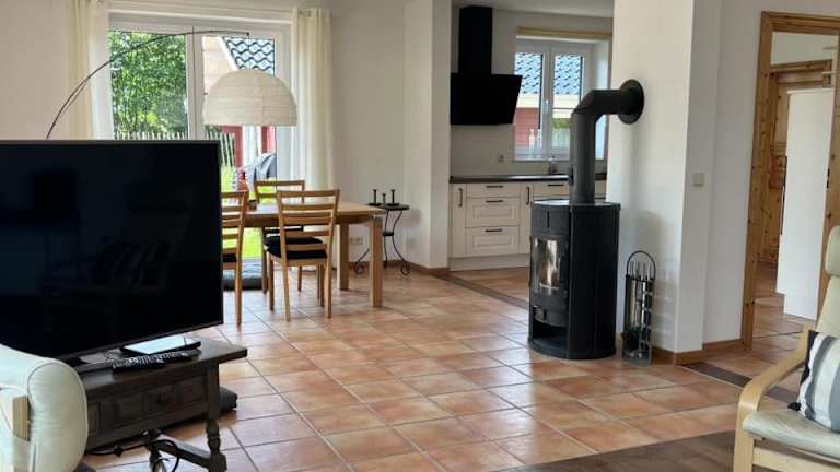 Die Unterkunft Ferienwohnung in Kronsgaard mit eingezäuntem Gartenbereich für Hunde bietet ein heimeliges Ambiente und spezielle Annehmlichkeiten für Gäste mit Hunden. Für eine entspannte Ankunft sind Check-in-Zeiten zwischen 16:00 und 19:00 Uhr vorgesehen.