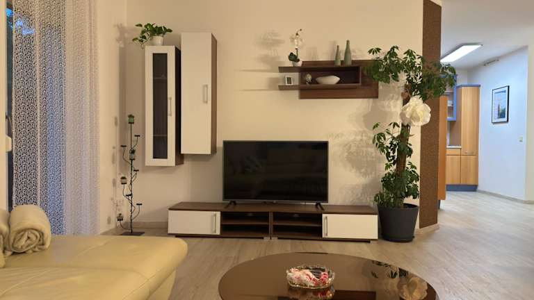 Die Ferienwohnung ist mit einem Schlafzimmer, einer modernen Küche mit Kühlschrank und Geschirrspüler, einem Flachbild-TV, einem Sitzbereich und einem Badezimmer mit Badewanne ausgestattet. Handtücher und Bettwäsche werden zur Verfügung gestellt.