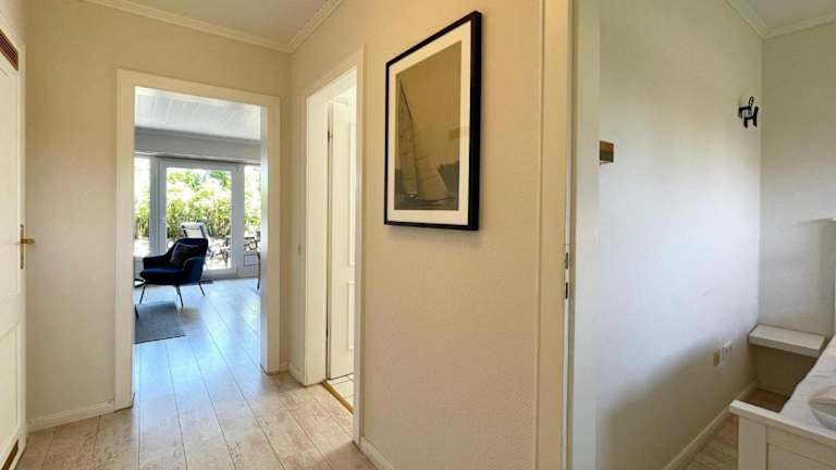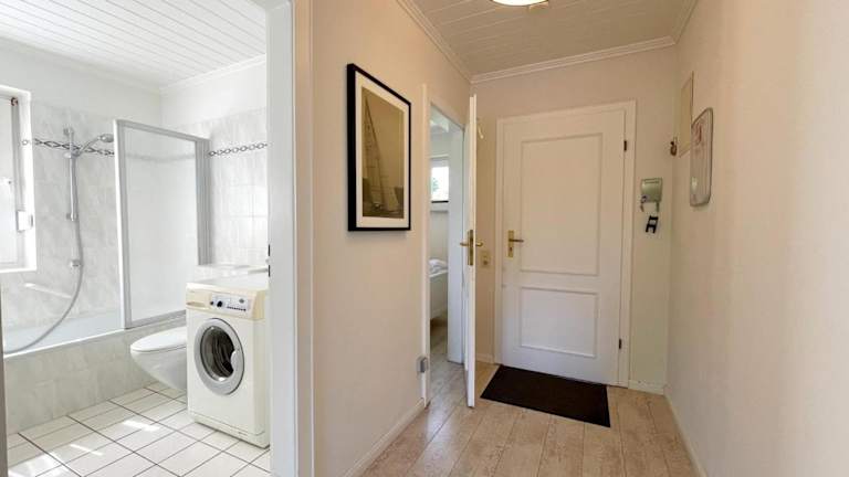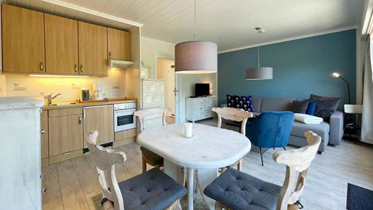 Die Ferienwohnung ist mit einer voll ausgestatteten Küchenzeile ausgestattet, die einen Kühlschrank und eine Kaffeemaschine beinhaltet. Lösung für eigenständige Verpflegung ist somit gegeben.