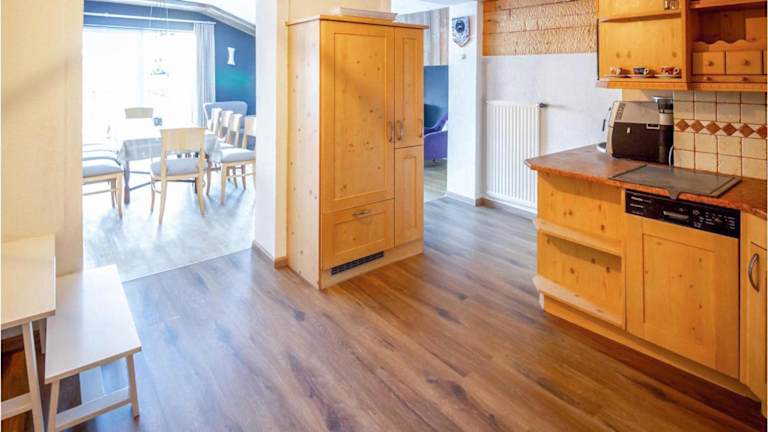 Die Ferienwohnung bietet Platz in vier Schlafzimmern und einem gemütlichen Wohnzimmer. Die gut ausgestattete Küche ermöglicht es Gästen, selbst zu kochen. Für die Bequemlichkeit der Gäste stehen drei Badezimmer zur Verfügung, ausgestattet mit Dusche und Badewanne.