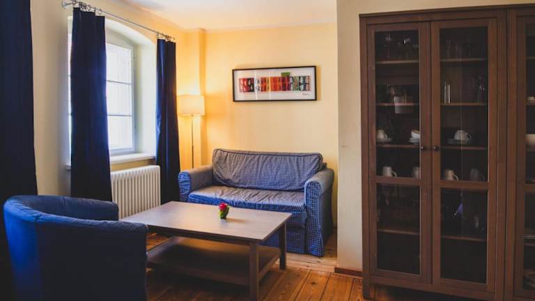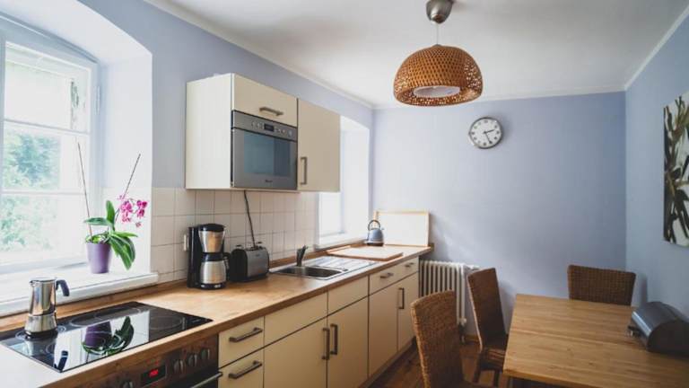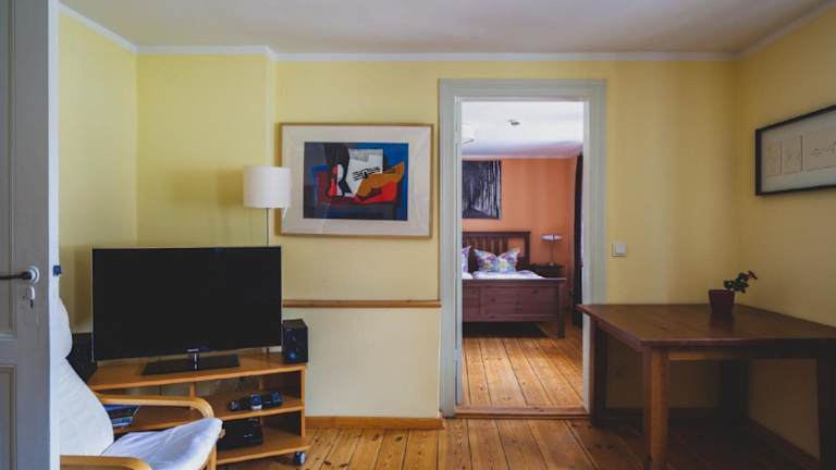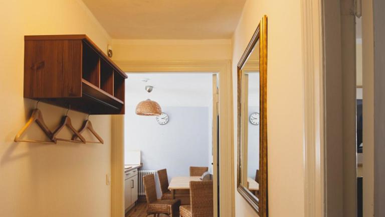 Die Ferienwohnung umfasst ein Schlafzimmer sowie ein Wohnzimmer. Sie bietet eine voll ausgestattete Küche mit Kühlschrank und Kaffeemaschine sowie ein Badezimmer mit Badewanne und kostenlosen Pflegeprodukten. Handtücher und Bettwäsche werden gestellt.
