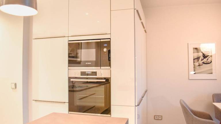 Die Unterkunft bietet eine gut ausgestattete Küchenzeile mit Kühlschrank, Geschirrspüler und Ofen, sodass Gäste ihre eigenen Mahlzeiten zubereiten können.