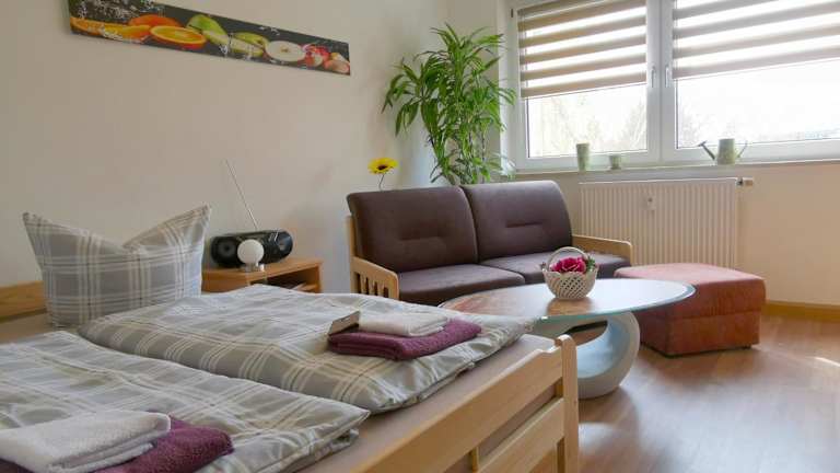 Die Ferienwohnung Kaltschmidt bietet ein heimeliges Wohnzimmer mit einem Flachbild-TV. Die Unterkunft verfügt über einen Privatparkplatz, der den Gästen zur Verfügung steht, sowie über kostenloses Wifi.