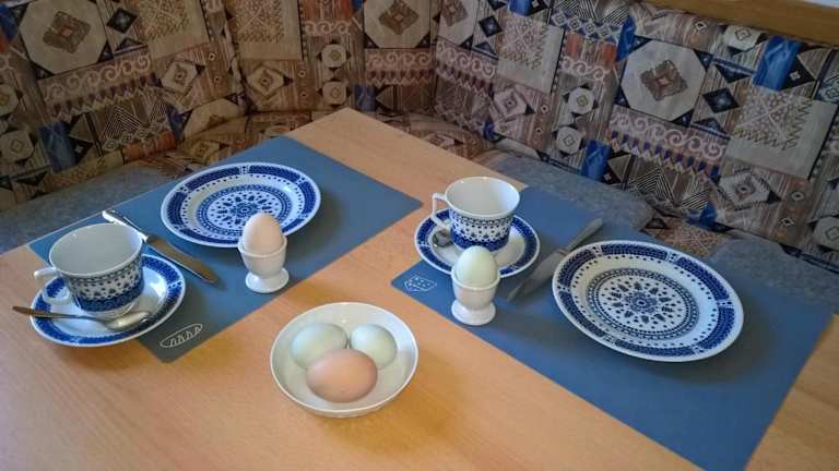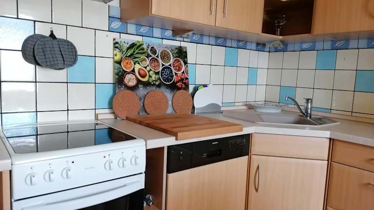 Es besteht die Möglichkeit, Essenslieferungen in die Unterkunft zu organisieren. Die Küche in der Ferienwohnung ist mit einem Kühlschrank und einem Geschirrspüler ausgestattet, was die Zubereitung eigener Mahlzeiten erleichtert.