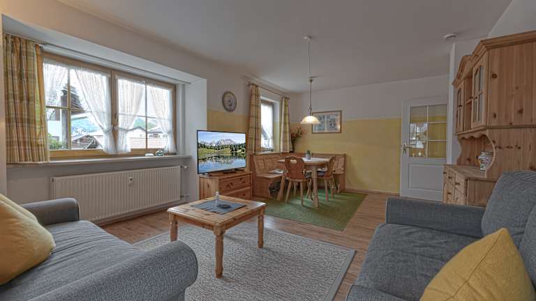Im Herzen des idyllischen Ortes Wallgau befindet sich im Haus Sabine die gepflegte Ferienwohnung Sonnleitn. Das gepflegte Traditionshaus begeistert seit jeher zahlreiche Erholungssuchende durch seine zentrale Lage zu Wanderwegen, Rad- und Mountainbikestrecken, der Langlaufloipe, dem kostenfreien öffentlichen Verkehrsmitteln, Gaststätten und Einkaufsmöglichkeiten. Anmeldung und Schlüsselübergabe bei Ferienwohnungen in den Bergen Christine Jennewein, Dreitorspitzstraße 1a, 82499 Wallgau www.fewo-in-den-bergen.de