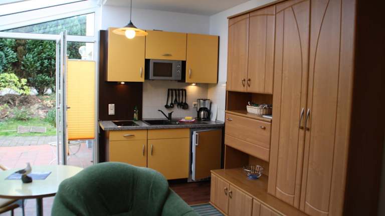 Die Ferienwohnung verfügt über ein Schlafzimmer und ein Wohnzimmer mit einem Flachbild-TV mit Satellitenkanälen. Eine voll ausgestattete Küche mit Kühlschrank und Mikrowelle sowie ein Badezimmer mit Dusche sind ebenfalls vorhanden. Handtücher und Bettwäsche werden zur Verfügung gestellt.