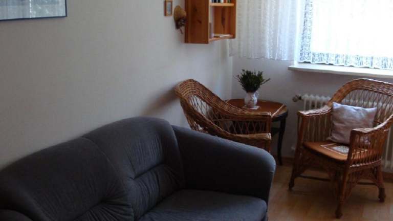 Die Ferienwohnung verfügt über ein Schlafzimmer, ein Wohnzimmer mit TV und Satellitenkanälen sowie eine voll ausgestattete Küche mit Kühlschrank und Ofen. Ein Badezimmer mit Badewanne oder Dusche ist ebenfalls vorhanden.
