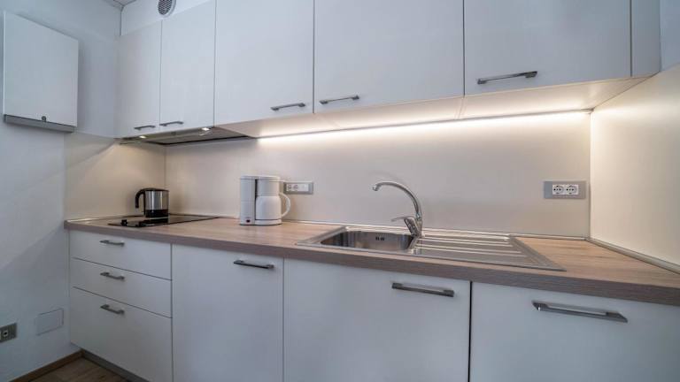 Die Ferienwohnung umfasst 1 Schlafzimmer und 1 Badezimmer. Zur Ausstattung gehören Bettwäsche, Handtücher, ein TV mit Satellitenkanälen, eine voll ausgestattete Küche sowie ein Balkon mit herrlichem Bergblick.