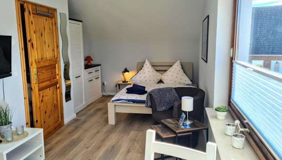 Die Ferienwohnung verfügt über ein Wohnzimmer sowie eine voll ausgestattete Küche mit Kühlschrank und Geschirrspüler. Ein TV ist ebenfalls vorhanden.