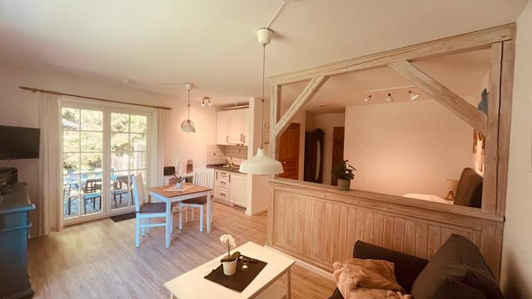 Die Ferienwohnung Kimi in Wieck ist ruhig gelegen und bietet einen direkten Zugang zur Natur. Der nächstgelegene Flughafen, der Flughafen Rostock-Laage, ist 75 km entfernt, was eine bequeme Anreise ermöglicht.